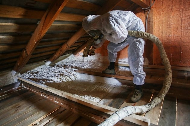 Le principe d'action est similaire au penoizol. Le processus de pulvérisation n'a lieu qu'après la préparation et le remplissage de la suspension. Ce matériau a deux composants. Les avantages d'une telle isolation de sol sont une installation rapide et la possibilité de la fixer sur n'importe quelle surface. Cependant, le produit est dangereux car il peut blesser la peau et pénétrer dans le système respiratoire. Vous devez travailler avec lui dans un respirateur et une combinaison spéciale.