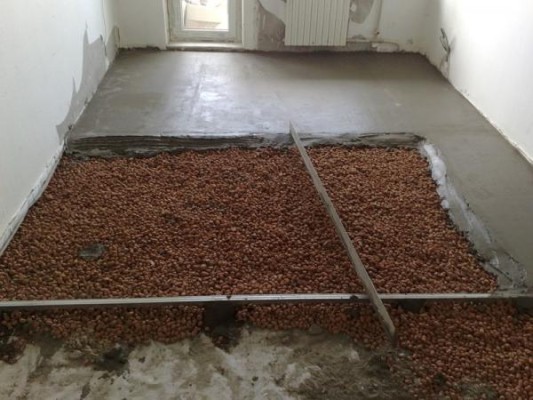 - Argile expansée. Il s'agit d'une argile en granulés obtenue par cuisson. Il est coulé dans des niches préalablement préparées dans le sol, puis coulé avec une chape en béton. La matière première est facile à installer, ne se prête pas à l'inflammation et est considérée comme respectueuse de l'environnement. L'isolation durera longtemps même avec des changements brusques de température. Il est souvent utilisé pour l'isolation des sols au-dessus du sous-sol.