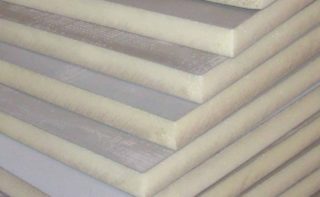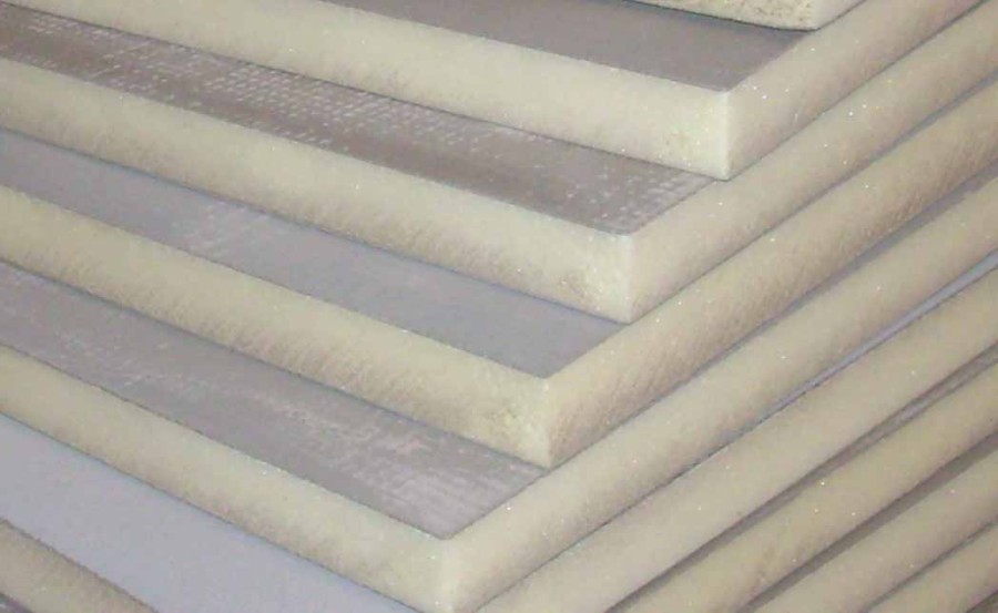 - Feuille de mousse de polystyrène.C'est une dalle épaisse dont la partie inférieure est constituée de granulés en les soudant entre eux. La partie supérieure a une couche de papier d'aluminium. Résiste à une plage de température de -180 à +180 degrés.