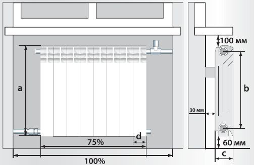 - Caractéristiques de l'installation de radiateurs composites