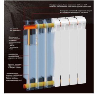 Les dispositifs "semi-bimétalliques" ou "pseudo-bimétalliques" diffèrent en ce que les canaux horizontaux qu'ils contiennent sont en aluminium. Les vendeurs peu scrupuleux font souvent passer ces batteries chauffantes pour de véritables bimétalliques. Mais ces « métis » sont inférieurs à leurs concurrents en termes de paramètres :