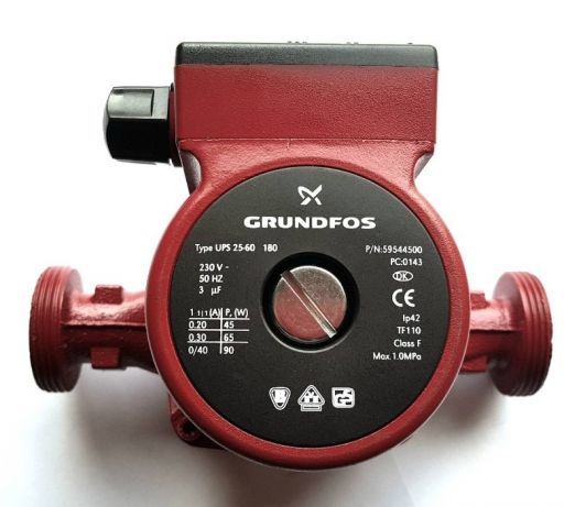 La deuxième position est prise par la pompe de marque Grundfos ALPHA2 25-40 180équipé d'un moteur à aimant permanent intégré. La puissance consommée par cet appareil depuis le réseau est de 0,022 kW, et la capacité est de 2,4 m3/heure. A une température de fonctionnement du liquide de refroidissement de +2 à +110°C, la pression créée dans les circuits est de 4,0 mètres.
