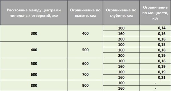 Le fabricant produit des radiateurs de deux tailles typiques, qui ont un entraxe de 300 et 500 mm avec une hauteur totale de 331 et 531 mm, respectivement. Compte tenu de la distance, les appareils sont marqués RAP 500 et RAP 300.
