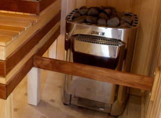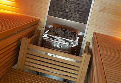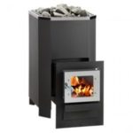 Un poêle à bois pour sauna contient un appareil de chauffage et un réseau de collecteurs de convection dans la construction. Le foyer à distance est monté dans une niche ou un dressing pour une alimentation en combustible séparée. Le fabricant fabrique les portes de la chambre de combustion en verre résistant à la chaleur.