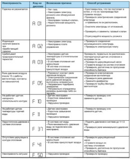 - A 03 - déclenchement de la protection contre la surchauffe. Il est nécessaire de diagnostiquer la pompe et le capteur. Le fluide dans la canalisation est vérifié, l'excès d'air est évacué.