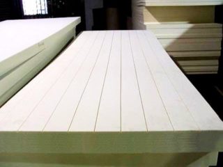 - Densité moyenne due à la porosité de la structure. Il fluctue dans la plage de 20 à 50 kg / m3. Il est pratique de travailler avec le matériau, il conserve bien sa forme pendant toute la durée de vie. Ne rétrécit pas et résiste à de multiples charges de compression sans perte importante de forme et de résistance. Pour plus de solidité, les plaques sont traitées avec d'autres matériaux.