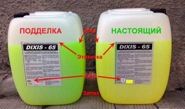 Il est facile de distinguer le liquide de refroidissement propylène glycol du liquide de refroidissement éthylène glycol : le premier est de couleur verte et porte souvent le marquage ECO. Au lieu d'un antigel au propylène glycol, vous pouvez acheter de la glycérine contrefaite.
