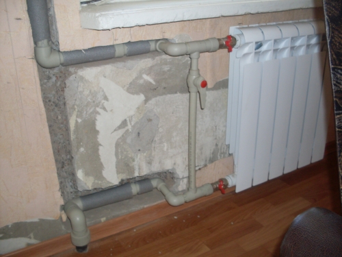 - Faire le câblage. Selon le matériau choisi, une soudure du métal ou un fer à souder pour polypropylène est utilisé pour cela.Avant d'entrer dans le radiateur, assurez-vous de mettre un robinet à tournant sphérique.
