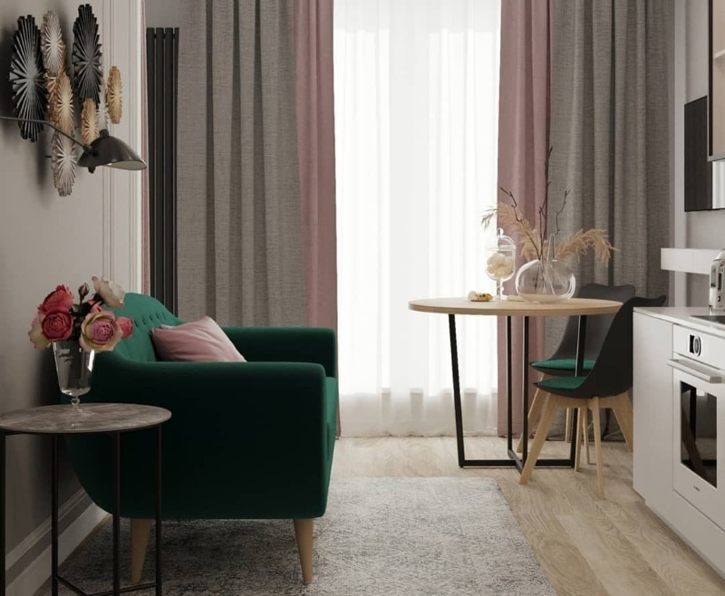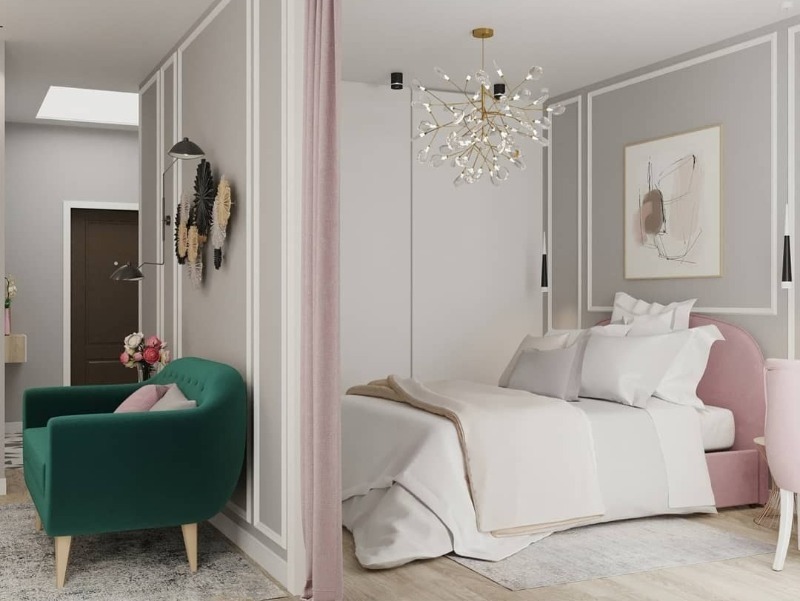 Si vous souhaitez zoner l'espace, par exemple dans un studio, il est préférable d'utiliser des tissus légers et aérés pour cela. L'option idéale serait le tulle.