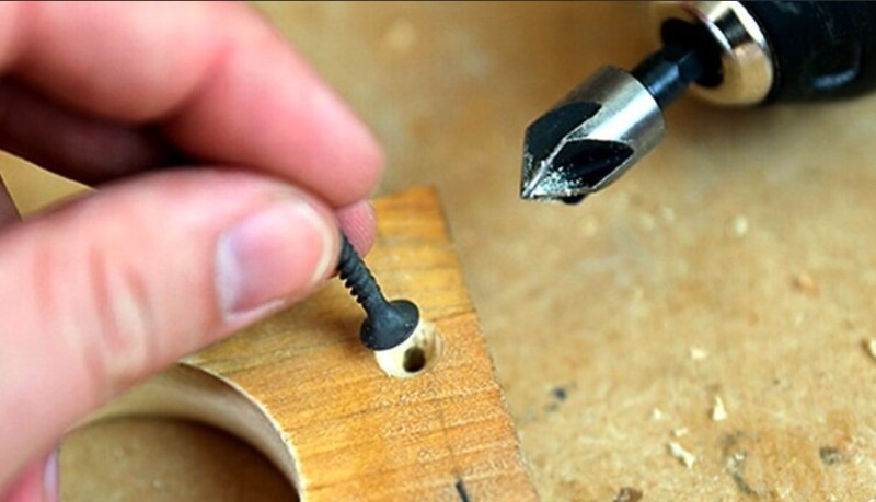 Tout d'abord, vous devez insérer la vis autotaraudeuse dans le tournevis au contraire, c'est-à-dire avec la tête vers le bas, afin de percer une petite dépression dans l'arbre. Cela empêchera les fibres de bois de se fendre.
