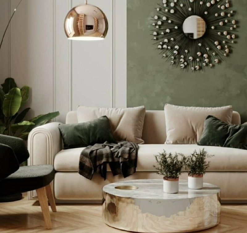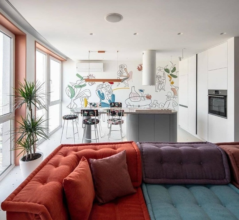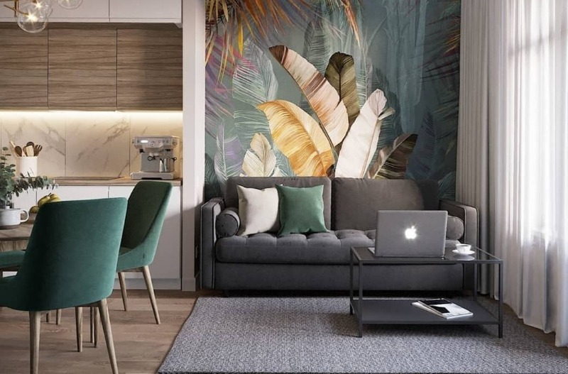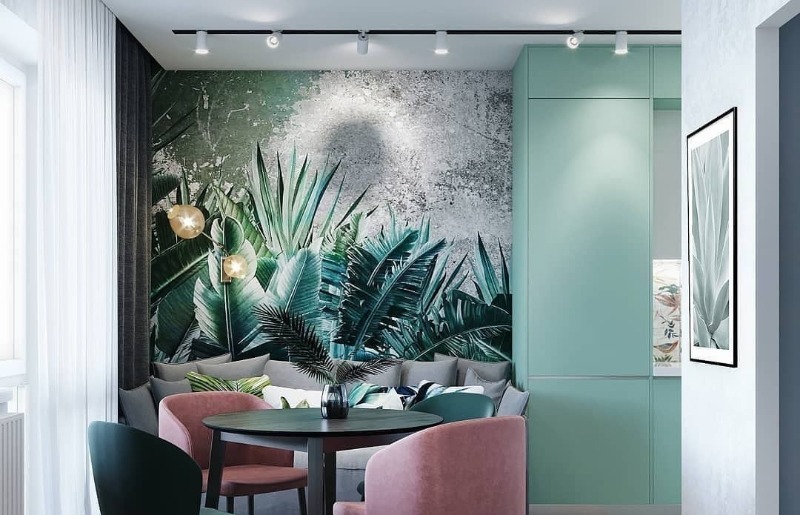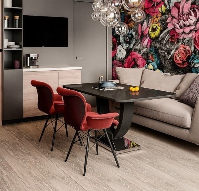 L'image sur le mur est combinée avec les éléments intérieurs et les complète.