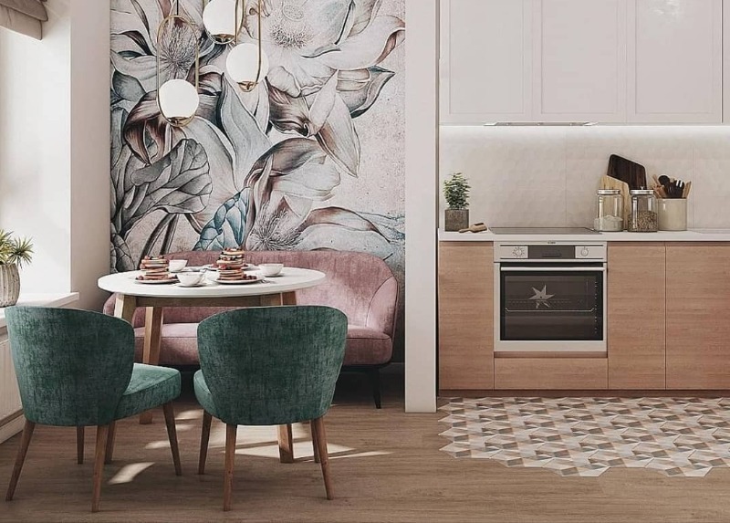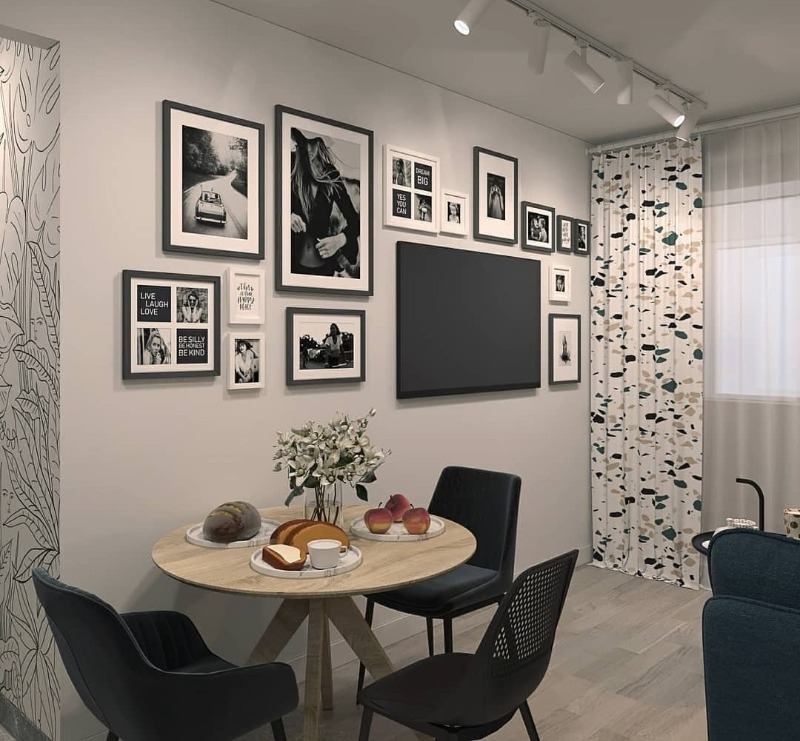 Juste un mur est ennuyeux, il est cher d'accrocher un bon tableau, le papier peint avec des bouleaux est du siècle dernier. Et je veux décorer la pièce magnifiquement! Allez sur Instagram, comptez @_kitchen_s et inspirez-vous.