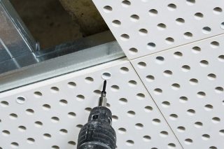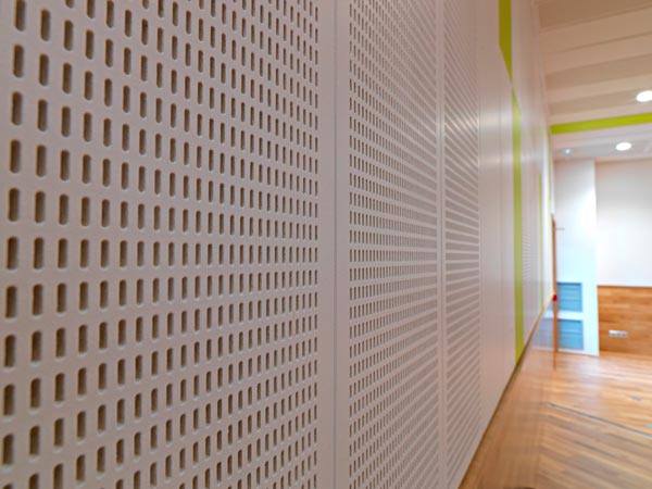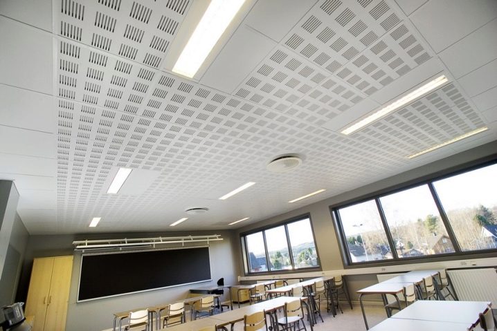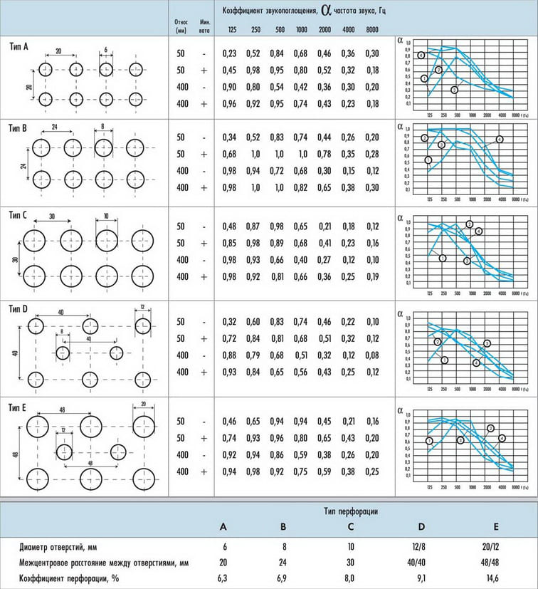 Ils utilisent les produits avec autant de succès Les marques Knauf... Produit avec diverses options de perforation, installé dans des salles de concert, des centres de musique, des salles de classe. Dimensions du panneau 2500 x 1500 x 12,5 mm. Les produits résistent aux températures extrêmes et à l'humidité.