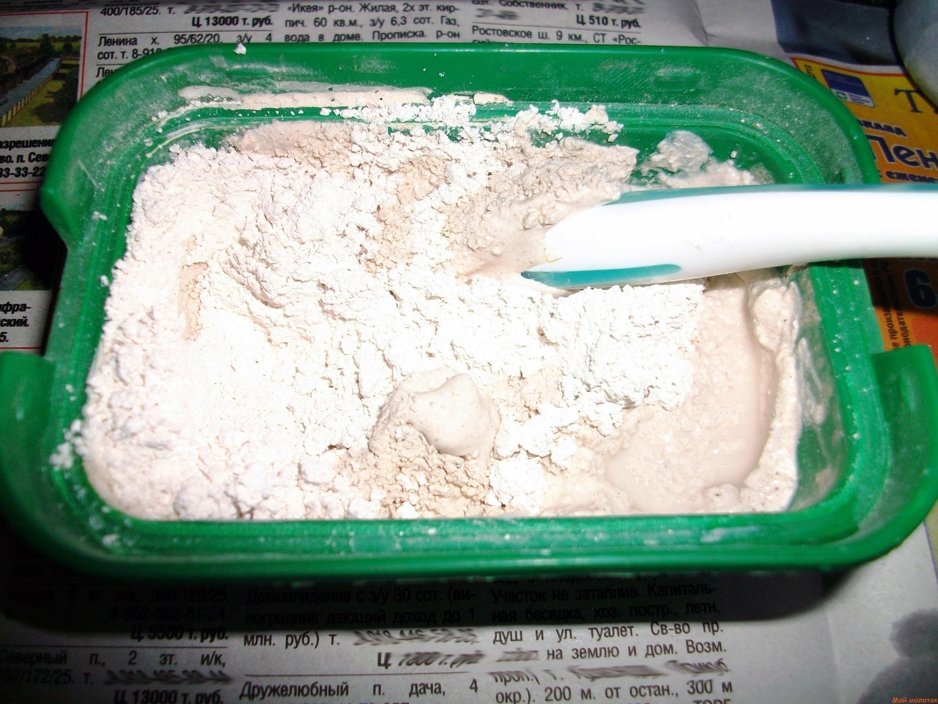 La technologie de dilution de la poudre avec de l'eau est particulièrement importante - une prise rapide nécessite une approche particulière. Tout d'abord, de l'eau est versée dans le récipient, puis la substance sèche est versée (et non l'inverse).