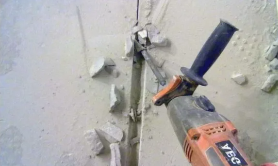 - Les rainures sont nettoyées de la poussière avec une brosse métallique. Des tiges de renforcement sont placées dans les rainures résultantes, pliées à la taille des rainures et retirées. Au même stade, les coins sont ajustés.