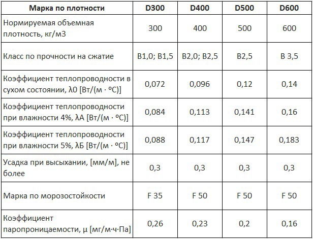 Le constructeur propose des blocs de gaz Bonolit densité de 300 à 600 kg/m³. La première option concerne les matériaux d'isolation structurelle et thermique. Il est sensiblement plus chaud que le béton ordinaire, mais pas aussi durable. La marque D600 est beaucoup plus forte. Cependant, la capacité calorifique d'une telle pierre est insuffisante ; aux latitudes moyennes, les murs du bâtiment devront être isolés.