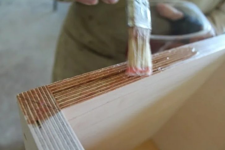 Pour le traitement du contreplaqué, l'huile siccative est chauffée à une température de 55 ° C. Appliquez le liquide avec un pinceau, assurez-vous de couvrir les extrémités.