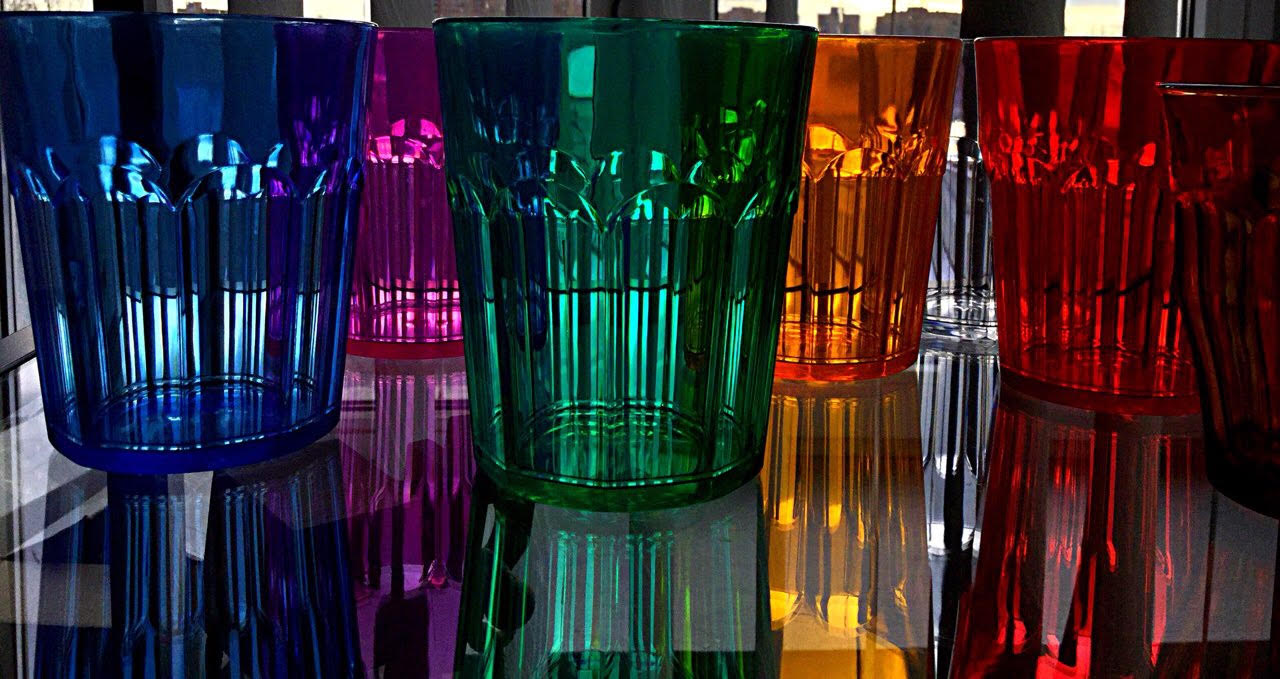 Faites la distinction entre le plastique transparent coloré et mat avec une surface brillante et ondulée.