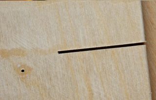 Lorsque vous travaillez avec une scie sauteuse ou une scie il y a un espace entre la lame de scie et le tampon de pression. Plus il est petit, moins la couche supérieure de contreplaqué risque de se casser et de s'écailler. Réduisez l'écart en fixant une plaque de glissement à la semelle. La plaque a des fentes le long desquelles le contreplaqué est coupé.