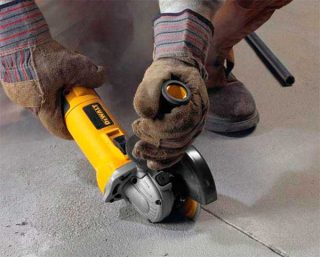 Lorsque la coupe est en surbrillance beaucoup de poussière, nécessaire à utiliser moyens de protection... En plus de lunettes et d'un respirateur, il est impératif de porter des gants de protection épais - des éclats s'échappent de sous l'outil à grande vitesse et peuvent blesser les mains.