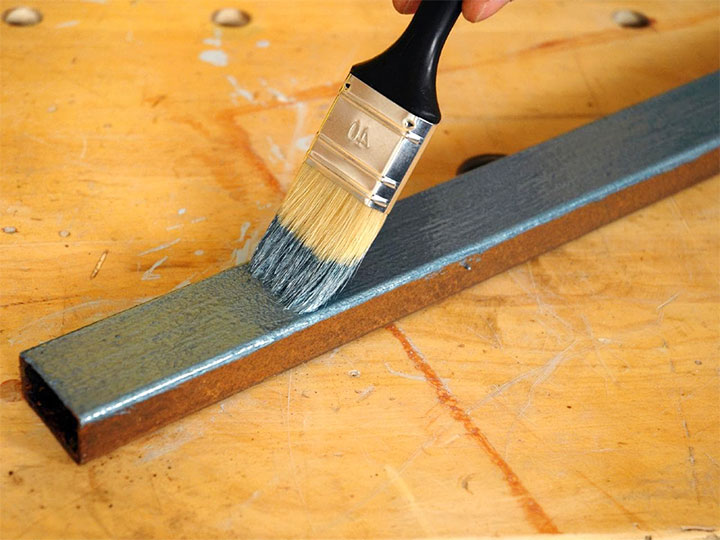 La surface est préalablement débarrassée de la rouille, la mousse est enlevée, dégraissée, apprêtée. Les taches fortement rouillées sont nettoyées avec de l'émeri, phosphatées avec des agents spéciaux. Dégraisser avec des solutions savonneuses ou des solvants à base d'acétone. Les restes de préparations alcalines sont soigneusement lavés des feuilles, séchés, puis d'autres couches sont appliquées.