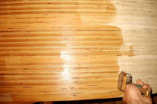 La surface du contreplaqué de qualité supérieure n'a pas besoin de ponçage. Mais si le matériel est en dessous du grade 2, une préparation est nécessaire... Ces feuilles sont nettoyées de la poussière et de la saleté et poncées avec du papier # 80. Broie le matériau perpendiculairement aux fibres de bois - il est nécessaire. Les extrémités et les coins sont également poncés.
