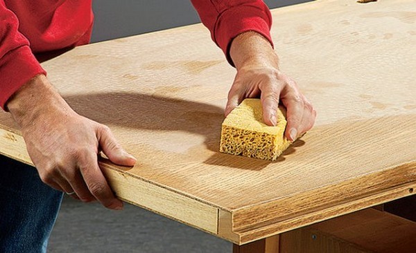 Si la tache d'huile est appliquée en plusieurs couches, après le séchage de la première, vous devez poncer la surface pour éliminer le poil surélevé.