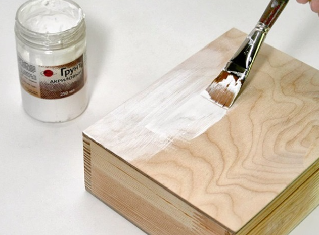 L'apprêt est appliqué pour niveler la surface du contreplaqué et améliorer l'adhérence du matériau à la composition de peinture. Le mélange est pris avec un effet antiseptique. Appliquer une couche avec un pinceau coquelicot ou un spray. La peinture est effectuée une fois que le sol est complètement sec.