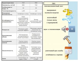 Le matériau de finition a été créé plus tard que les cloisons sèches, il est donc dépourvu de ses défauts, mais il a acquis de nombreux avantages. Le premier avantage par rapport à GCR est augmentation de la force et plus longue durée de vie comme couche de nivellement.