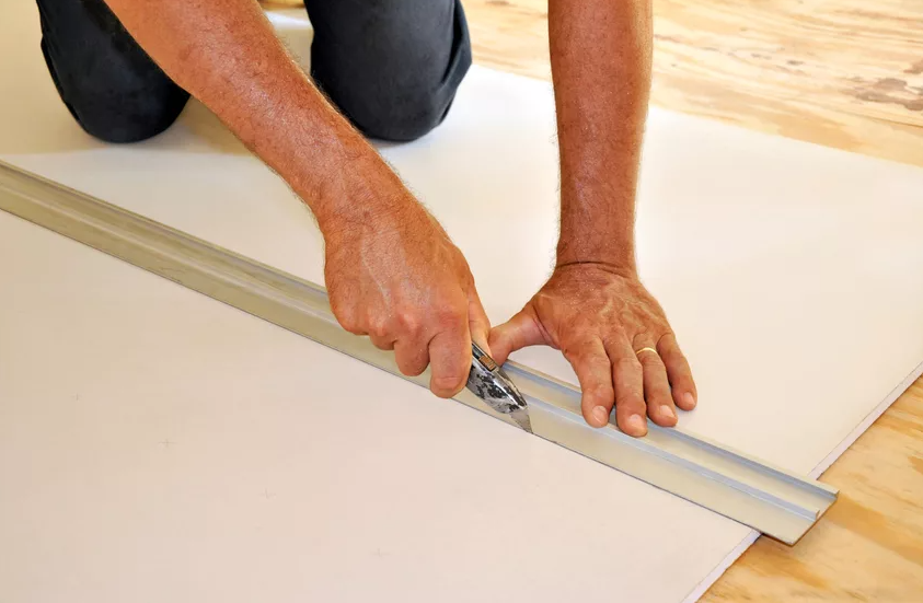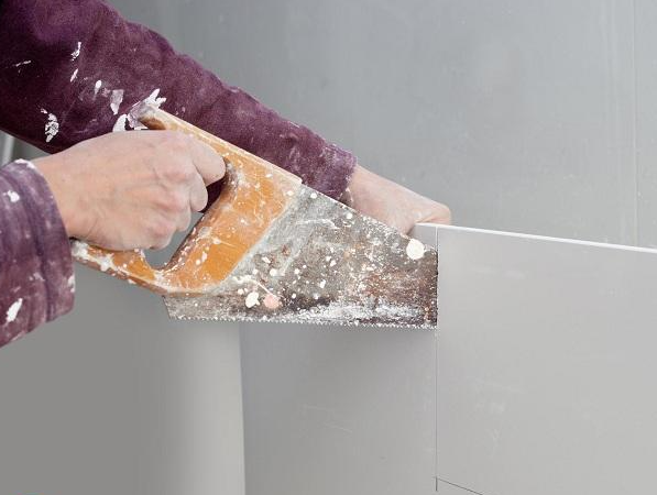 Les fabricants produisent des panneaux de petite taille pour réduire le nombre de pièces découpées, mais il faut quand même découper la plaque de plâtre pour recouvrir la surface.