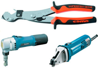 Les grignoteuses sont bonnes pour les coupes de petit volume. Dans ce cas, la tuile métallique chauffe également, mais faiblement. Vous pouvez couper dans une courbe droite et complexe avec des ciseaux.