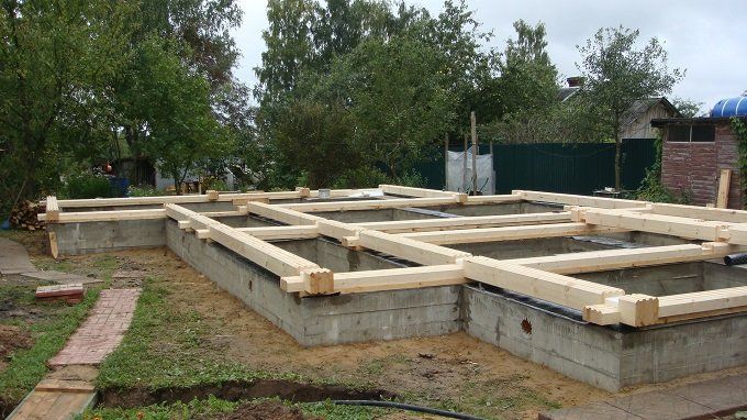 - Après construction et imperméabilisation, une structure horizontale est posée sur la fondation, qui sert support des futurs chapiteaux et murs intérieurs... Le bois le plus lourd et le plus épais est utilisé. Au même stade, ils montent bûches pour le sol.
