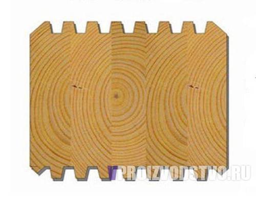 Des lamelles fines, mais suffisamment larges et longues sont découpées dans les résidus de haute qualité, puis collées ensemble en un seul ensemble. Le matériau résultant ressemble à une poutre d'une certaine taille et n'est pas inférieur en résistance à la version découpée dans le tronc.