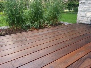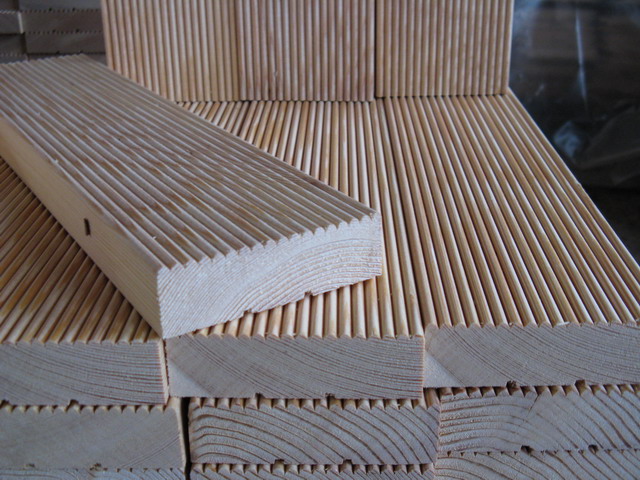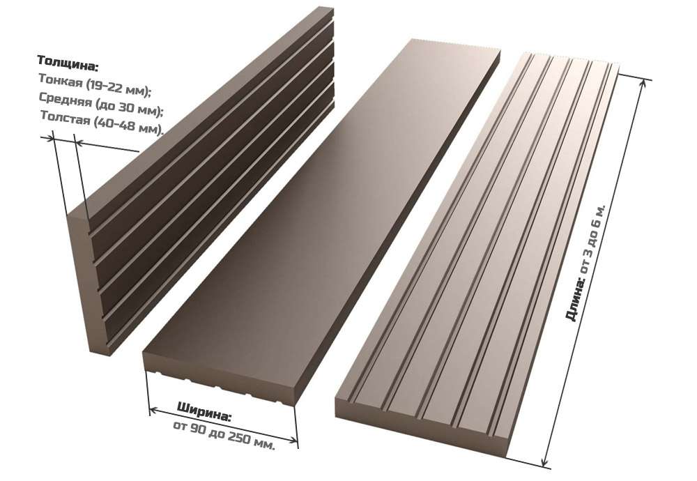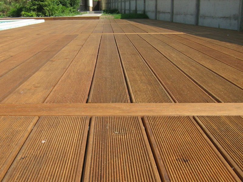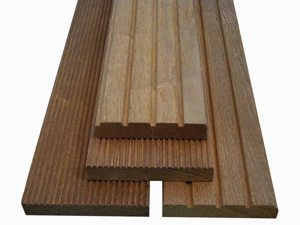 - Planche de terrasse en bois naturel il peut être lisse ou rainuré. Ils sont fabriqués à partir du mélèze habituel, de l'aulne, du chêne ou des espèces exotiques sont utilisées, par exemple le séquoia, le ketakong, le cerisier du Brésil.