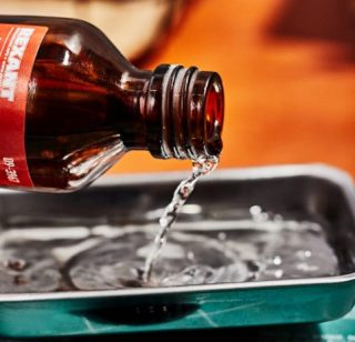 - Le dichloroéthane est versé dans un récipient en verre, remplissant complètement les copeaux.