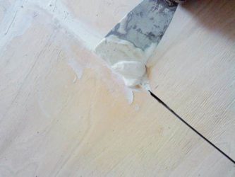 - Si un matériau souple est posé dessus, comme le linoléum, les joints entre les feuilles et les rainures des têtes de quincaillerie sont scellés avec un mélange de mastic.