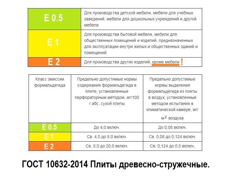 - E1 - l'évaporation jusqu'à 10, ce qui permet l'utilisation d'aggloméré pour la fabrication de meubles et d'ameublement pour enfants ;