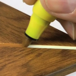 Pour maintenir un écart et ajuster la pose des feuilles, des cales en bois sont insérées entre le mur et l'aggloméré.