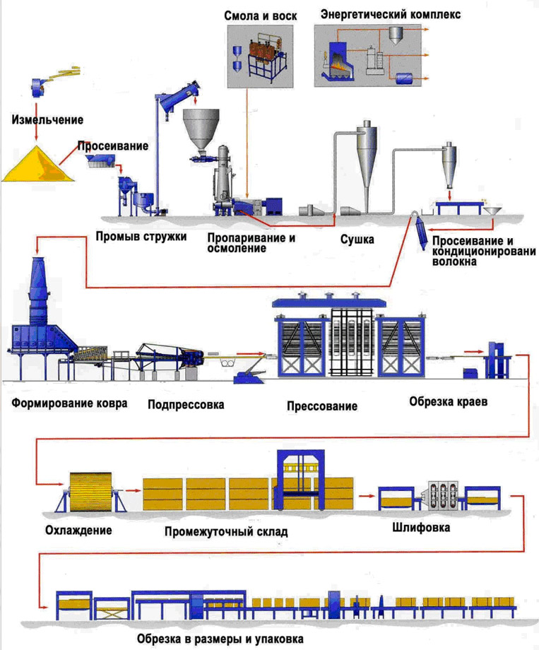 L'ingrédient principal dans la production de panneaux de particules est copeaux et copeaux technologiquesobtenu dans le processus de travail du bois des matières premières d'espèces de feuillus et de conifères. L'utilisation de déchets de scieries, d'allumettes, de contreplaqués et d'autres industries peut réduire le coût de production.