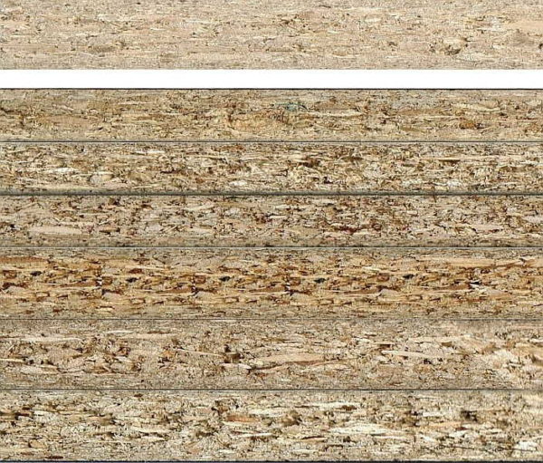 - La présence de couches visibles depuis l'extrémité de la dalle... Les produits de haute qualité se composent d'un intérieur, relativement lâche et de deux extérieurs, denses, faits de copeaux fins.