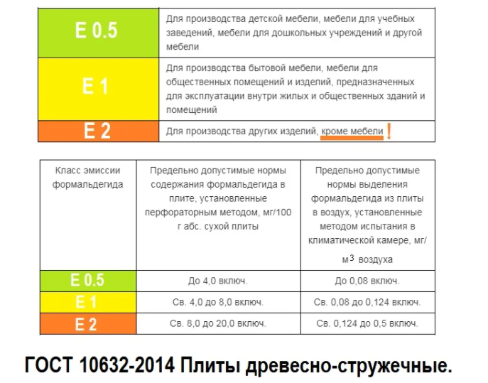 Selon la catégorie de produits pour la libération de formaldéhydes, GOST indique directement champ d'application: