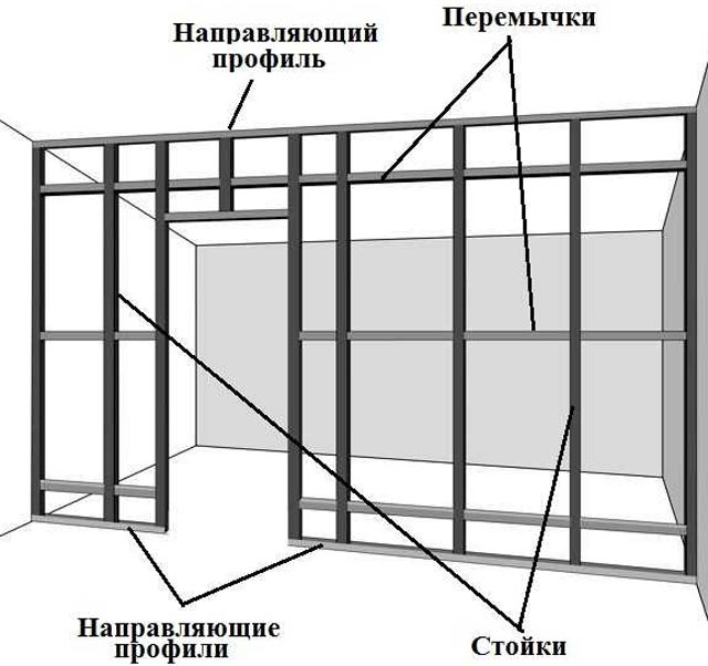 Tout d'abord, l'emplacement de la cloison et de la porte est déterminé. Il est pris en compte qu'une porte d'un profilé de cloison sèche doit avoir stock de 50 mm de largeur et 2-3 cm de hauteur... Des tolérances sont nécessaires pour le montage du cadre de porte.