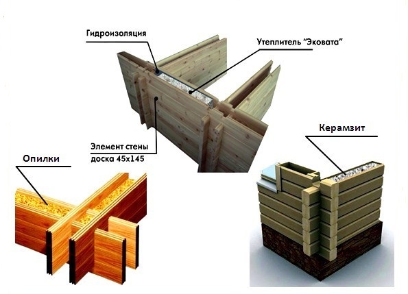 - le matériau de construction en forme de double contour est Conseil, le plus souvent en bois de conifères ;
