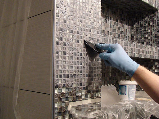 Le coulis époxy peut être appliqué pour la mosaïque, y compris comme adhésif.