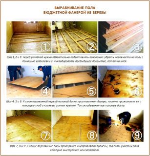 - Noter - pour les sols bruts, une qualité élevée n'est pas nécessaire, donc des feuilles de 3 et même 4 qualités sont utilisées. Pour la finition des sols, prenez du contreplaqué de 1 ou 2 grade.