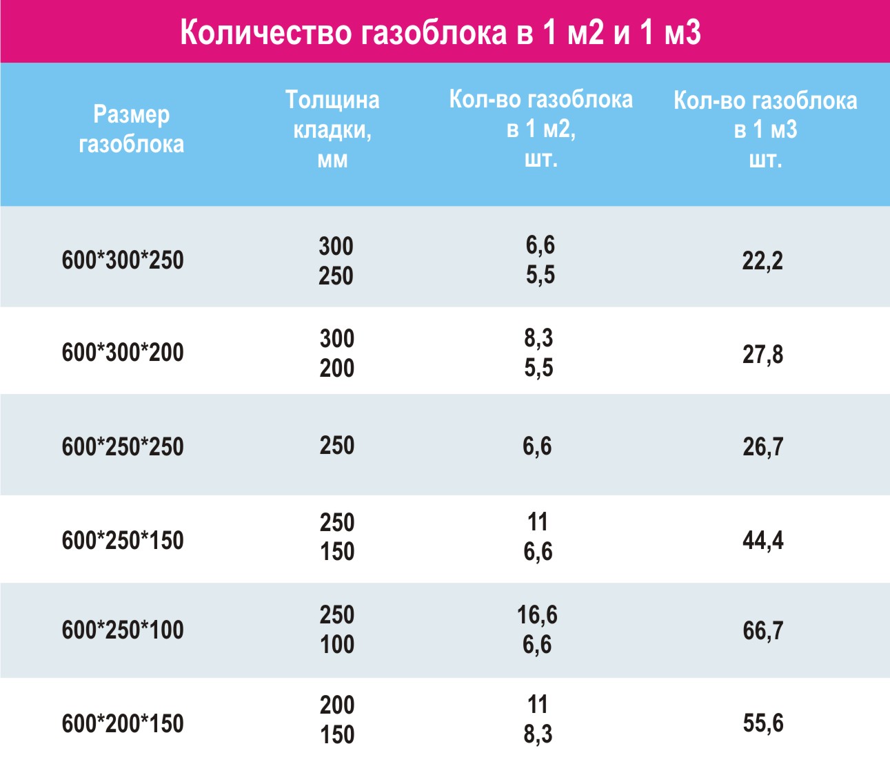 Le béton cellulaire est classé comme béton cellulaire. Le matériau poreux présente des caractéristiques avantageuses par rapport à un prix acceptable, et sa faible conductivité thermique permet d'économiser des ressources énergétiques. Les tailles du bloc de gaz sont différentes, elles dépendent de la marque, de la densité, du climat de la zone de construction. Les dimensions affectent le nombre d'éléments sur la palette, leur nombre dans le mètre carré et cube du mur.