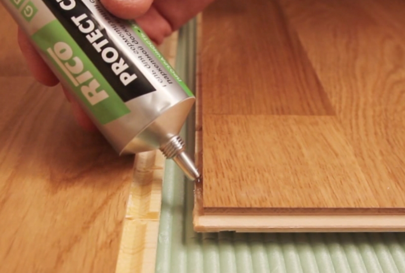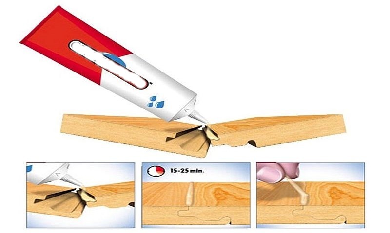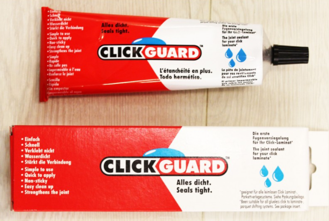 - produit de l'entreprise allemande Cliquez sur Garde pour sols stratifiés et parquets, réalisé en tubes avec buse (un paquet suffit pour 8 m² de surface) et ne nécessite pas d'outillage particulier pour la pose. Il est nécessaire d'éliminer l'excès de composition 15 minutes après l'application. L'outil a également un inconvénient - il est assez cher.