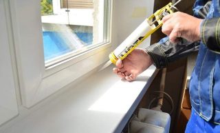 - sceller les joints sur les fenêtres en aluminium, en plastique et en bois lors de l'installation de rebords de fenêtre;