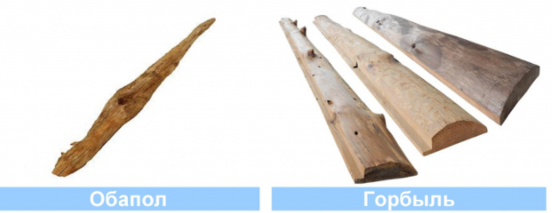 Obapol et croasseur obtenu après sciage d'une barre carrée à partir d'un tronc rond (parties latérales du tronc). Ils se distinguent en fonction du degré de sciage des plans extérieurs. Il existe des éléments avec une surface à moitié sciée, avec un plan supprimé, tandis que les extrémités diffèrent par des largeurs différentes.