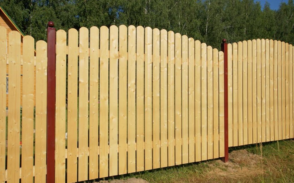 La palissade est découpée sous la forme de pièces de clôture, le produit est représenté par des bandes verticales ou horizontales uniformes de même section. Les traverses sont fabriquées sous forme de poutres, en utilisant un type de bois structurel (durable).